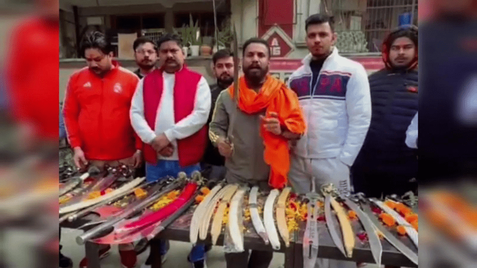 காசியாபாத்தில் வாள்களை விநியோகித்த மற்றும் இஸ்லாமிய எதிர்ப்பு கோஷங்களை எழுப்பியதற்காக கைது செய்யப்பட்ட இந்து ரக்ஷா தள் உறுப்பினர்கள் .